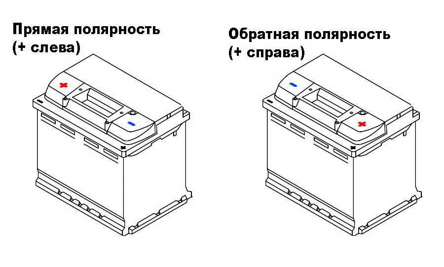 Полярність – розташування клем на корпусі батареї. Плюс (+) праворуч називають «зворотною полярністю» або «полярністю 0». Плюс (+) ліворуч - "пряма полярність" або "полярність 1". Зверніть увагу при виборі на цей показник, так як при інших рівних параметрах, батарея іншої полярності не може бути підключена - струмопровідні клеми просто не дотягнуться до відповідних клем батареї.